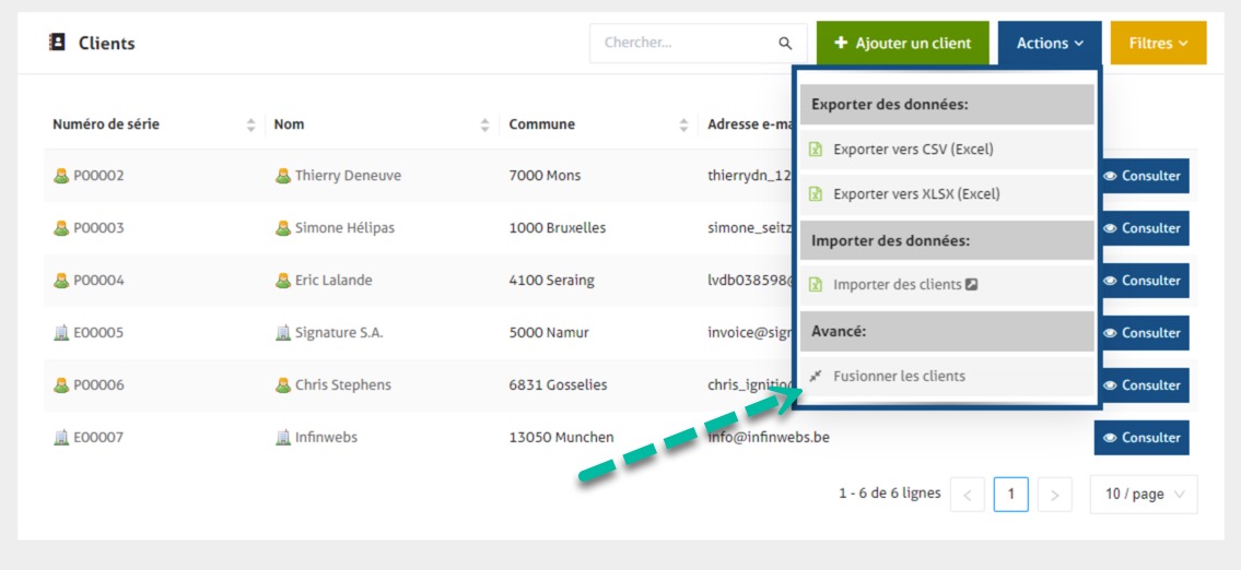 ### Fusionner des clients
