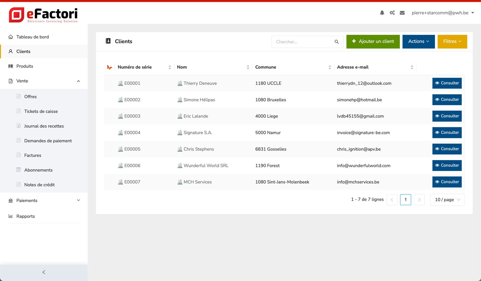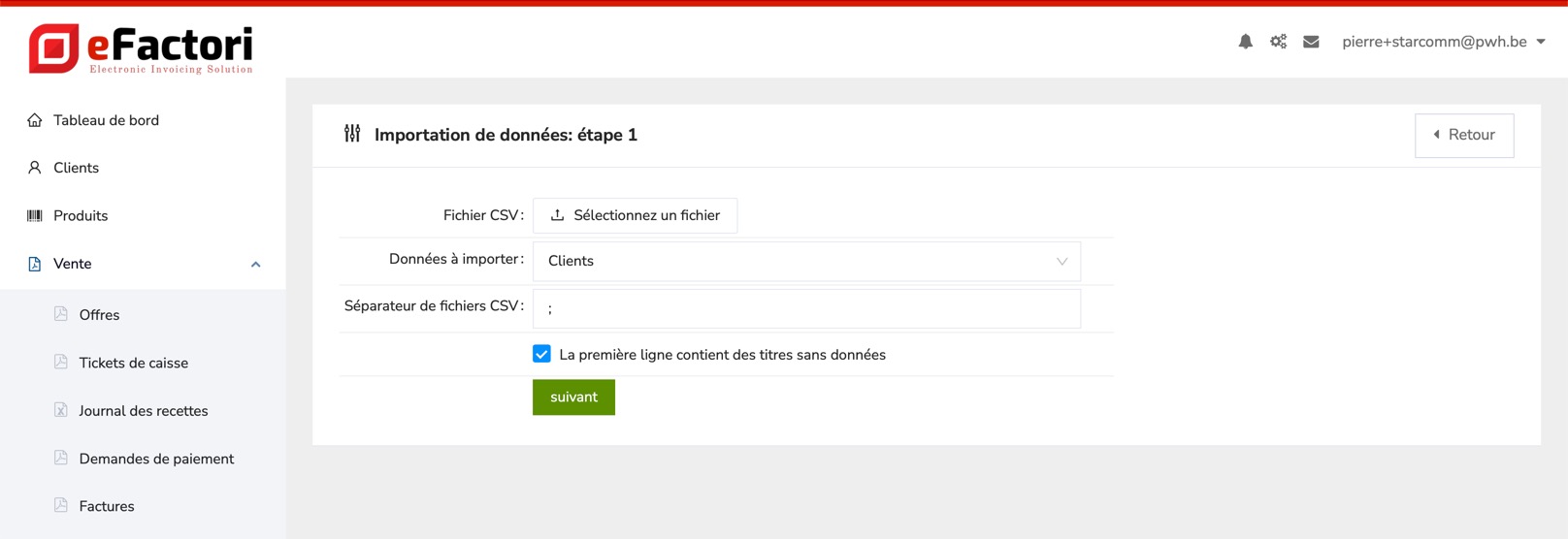 A partir d'un simple [fichier csv](https://efactori.gitbook.io/efactori.be-fr/parametres/importez-vos-donnees/comment-creer-un-fichier-csv), vous pouvez importer une liste de clients existante dans eFactori. En trois étapes, vous avez déjà téléchargé votre fichier d'adresses. Une telle importation est également possible avec une liste de fournisseurs, ou de produits. Pour savoir comment effectuer une importation, [cliquez ici.](https://efactori.gitbook.io/efactori.be-fr/parametres/importez-vos-donnees#clients-et-fournisseurs)