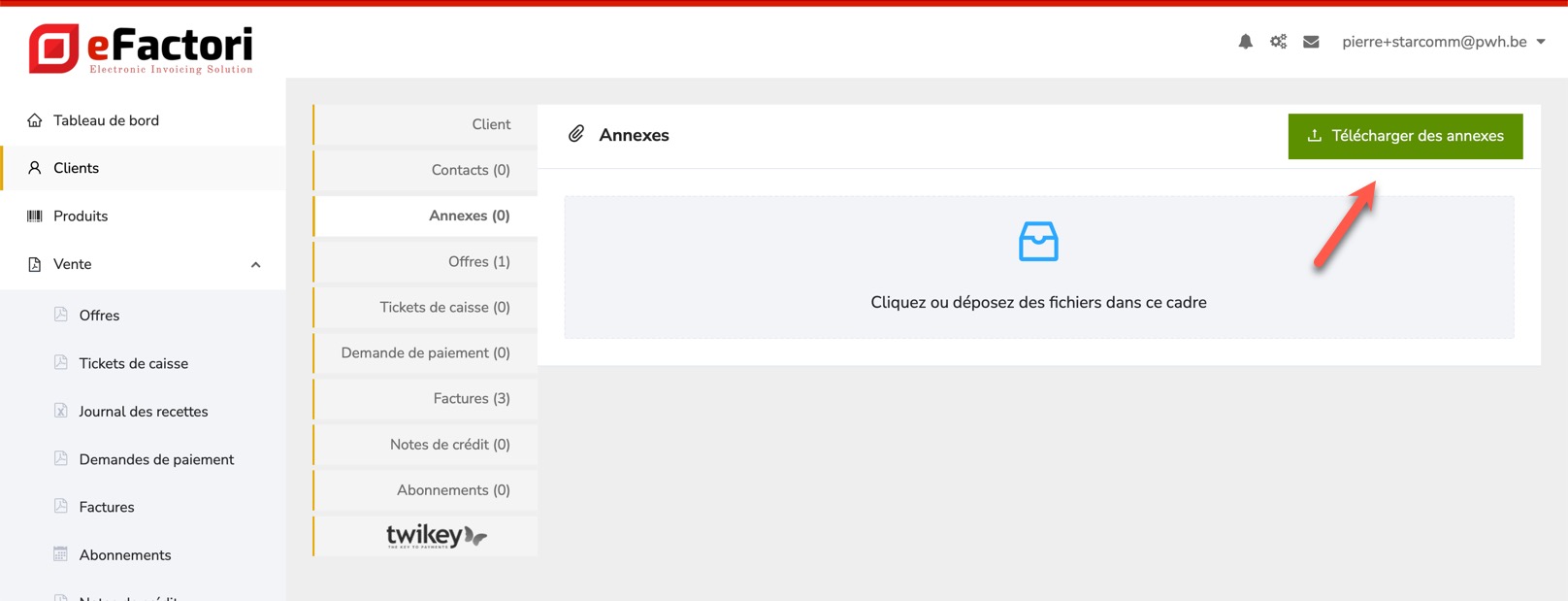 Vous pouvez également envoyer des annexes en standard avec chaque message adressé à une entreprise, par exemple les conditions générales de vente. [Lisez ici comment le faire](https://efactori.gitbook.io/efactori.be-fr/parametres/annexes/comment-ajouter-mes-conditions-generales)**.**