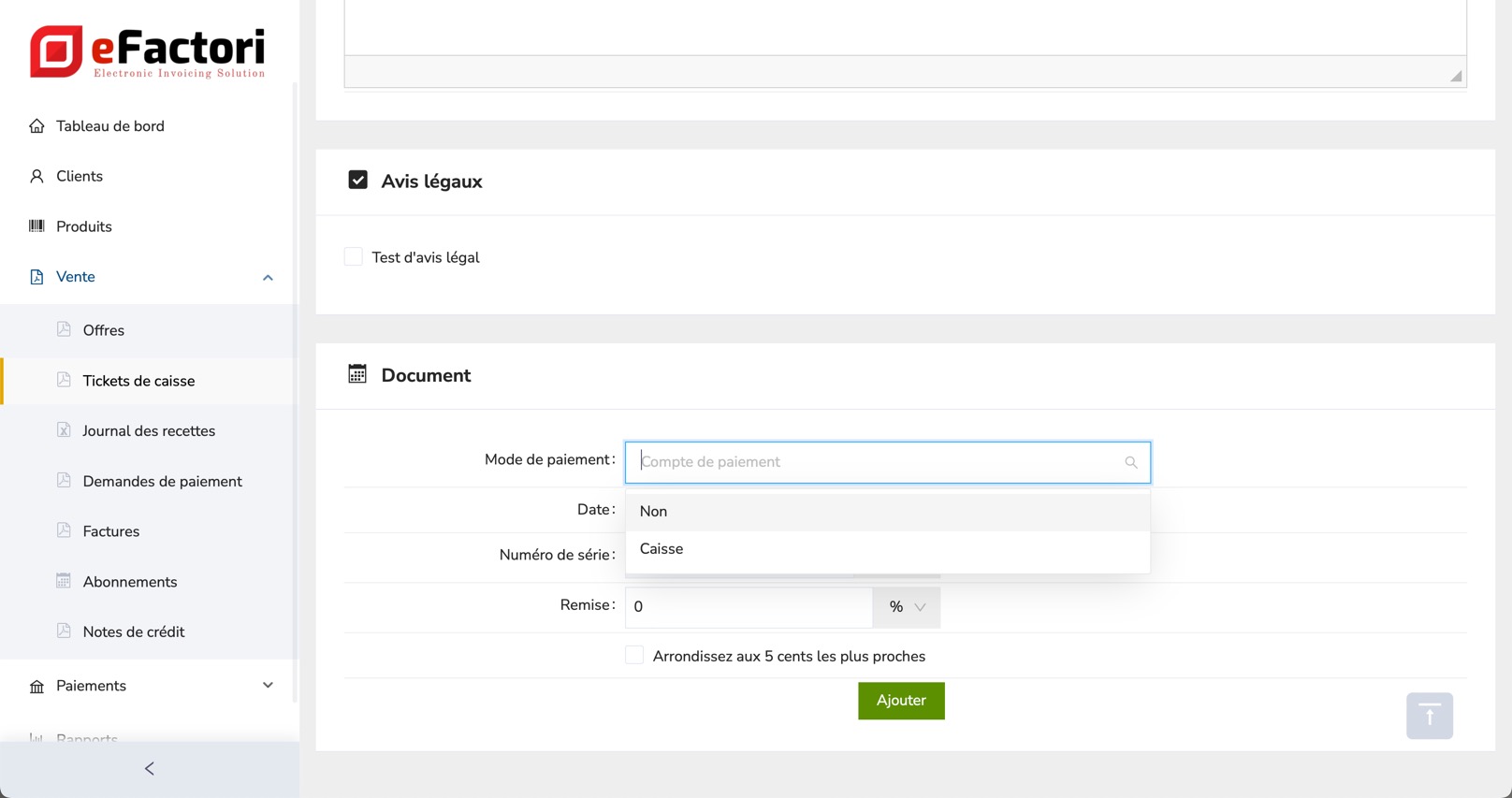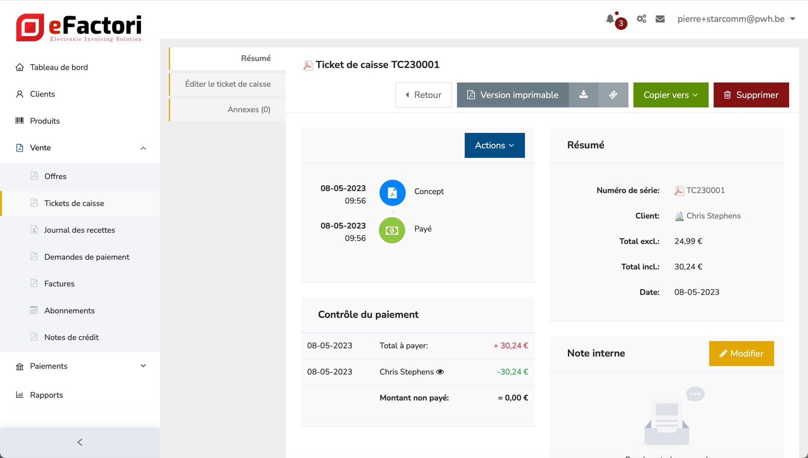 Les tickets de caisse peuvent être utilisés en parallèle avec les factures normales. Ils peuvent également être conservés dans un [journal des recettes](https://efactori.gitbook.io/efactori.be-fr/modules/journal-des-recettes).